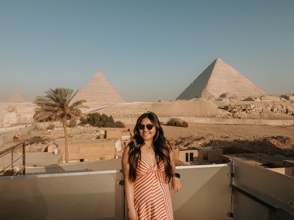 After landing in Cairo, we took a taxi from the airport to our hotel in Giza. On the way, I caught my first glimpse of the pyramids. I’ll be honest, I teared up a little. After seeing them only in documentaries, there they were, rising from the desert like a dream made real. We stayed in a hotel that had a perfect view of the Giza Pyramids. Because we arrived in June (peak summer!), we spent the rest of the day recovering from the heat and relaxing in our room.